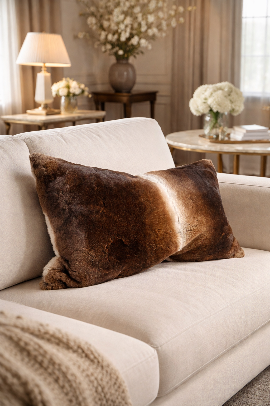 Un incontro raffinato tra materiali pregiati e tradizione tessile, ideale per aggiungere calore ed eleganza a divani, poltrone e letti.