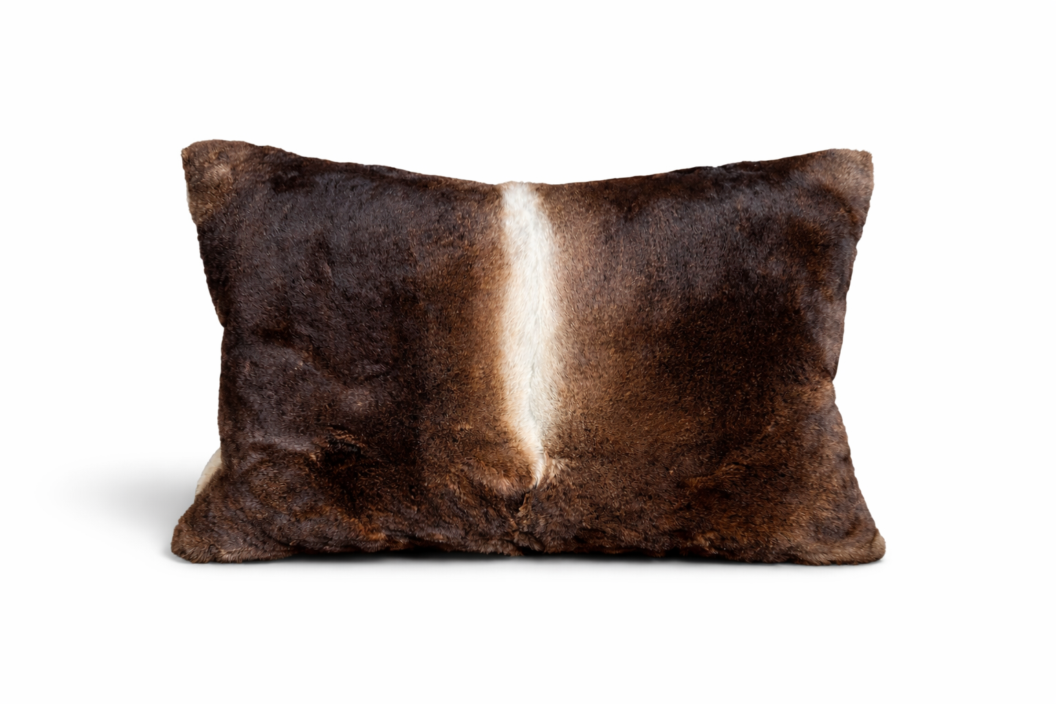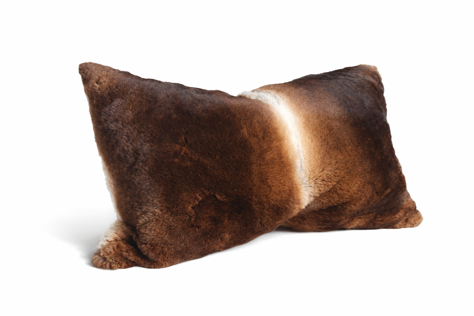 Cuscino decorativo di alta gamma con fronte in vera pelliccia Rex francese, morbida e vellutata al tatto, e retro in seta Ikat artigianale.